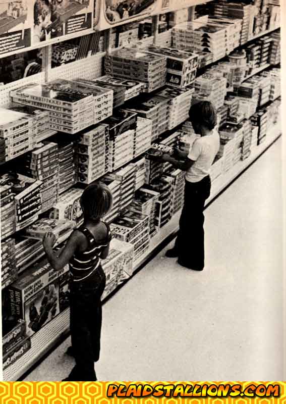 This is K&K Toys in Virginia Beach, Virginia in 1977. K&K at the time had 20 locations, their interiors were painted Ontario Violet and Matador Red according to articles. I just wish I could see the display in the front better.