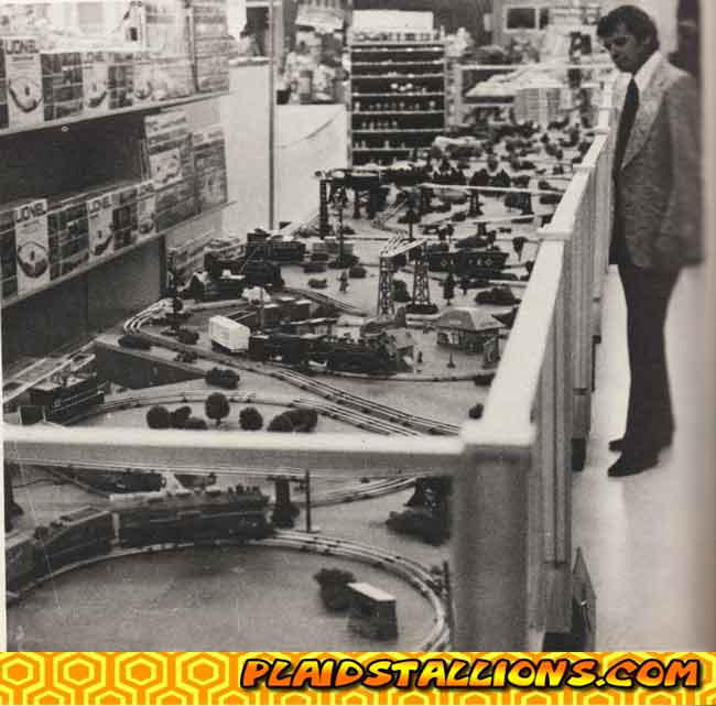 A train display from an unknown 1975 hobby store, it appears Jack Lord is quite the Lionel fan.....