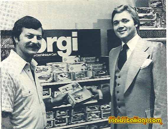 Another wonderful installment of Vintage Toy Store pictures is upon us, next to the Superhero Mall Appearance Gallery this is most likely my favourite section of the site. Above we have two unnamed gentlemen infront a wonderful display of Corgi diecasts, they seem be fighting for the Corgi Bat Bike, I don't blame them.