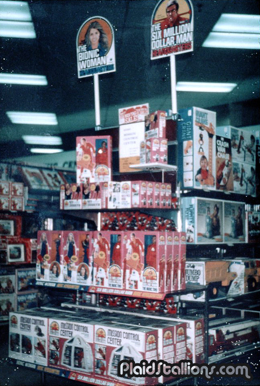 This end cap of Kenner Six Million Dollar Man and Bionic Woman dolls is a wonderful reminder of the world I grew up in and wish to revisit.