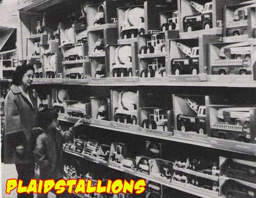 Meanwhile, across the aisle, a young man is thinking Tonka trucks in that same Toy City.