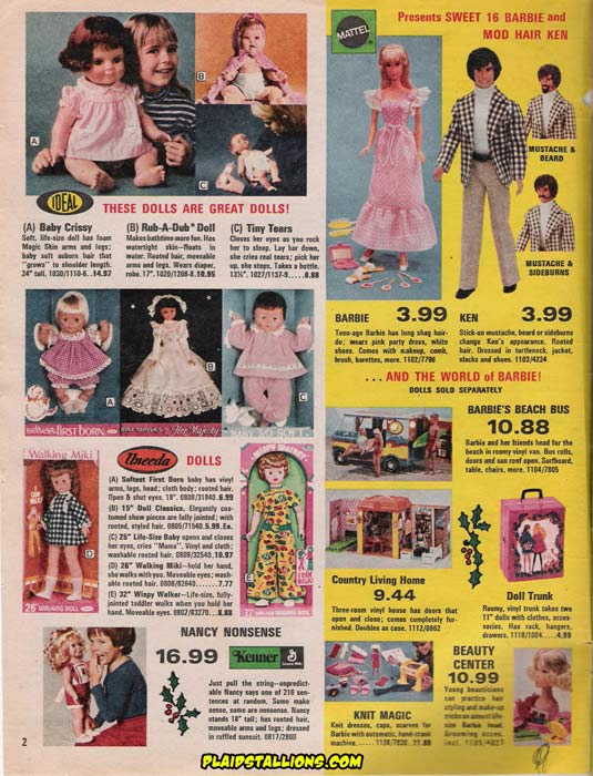 Barbie was joined this year by "Mod Hair Ken", you could give Ken all kinds of facial hair and sideburns, heck even a uni-brow I guess but nothing was going to make you notice anything but that Jacket. I have no idea what "Nancy Nonsense" from kenner does but that's one of the coolest names for a toy I've heard all day.