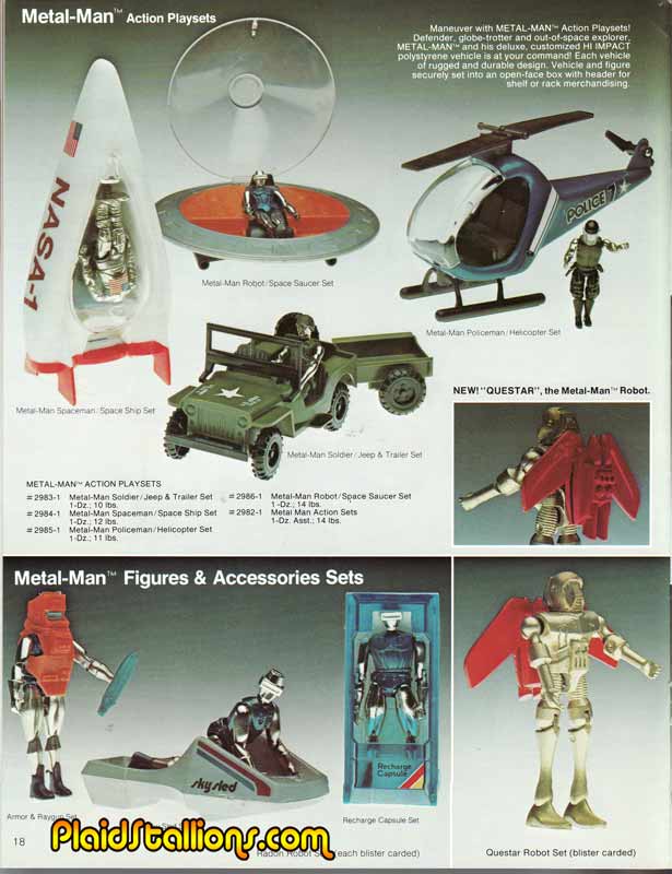 The Metal Men were a cool series of 3 3/4" diecast action figures with no back story. Heavily influenced by the Japanese, many of the characters had THX 1138 look to them.
